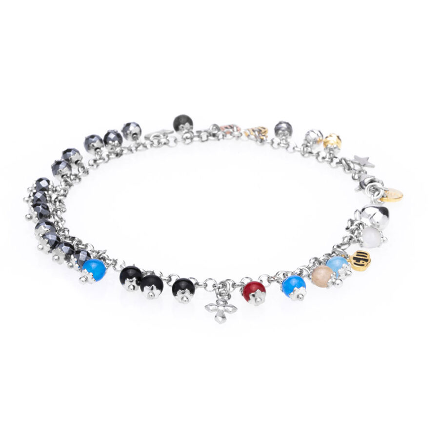 Argento e Acciaio, BraccialiBracciale in argento 925, con 33 elementi diversi per forma materiali e colori, per raccontare la storia d’amore infinita: la vita di Gesù. Una storia lunga più di 2000 anni. Lunghezza max 19 cm