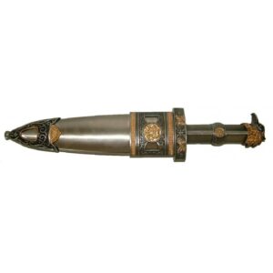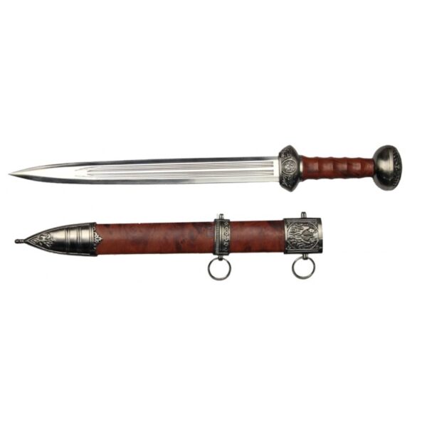 Daga romana con lama in acciaio e fodero.